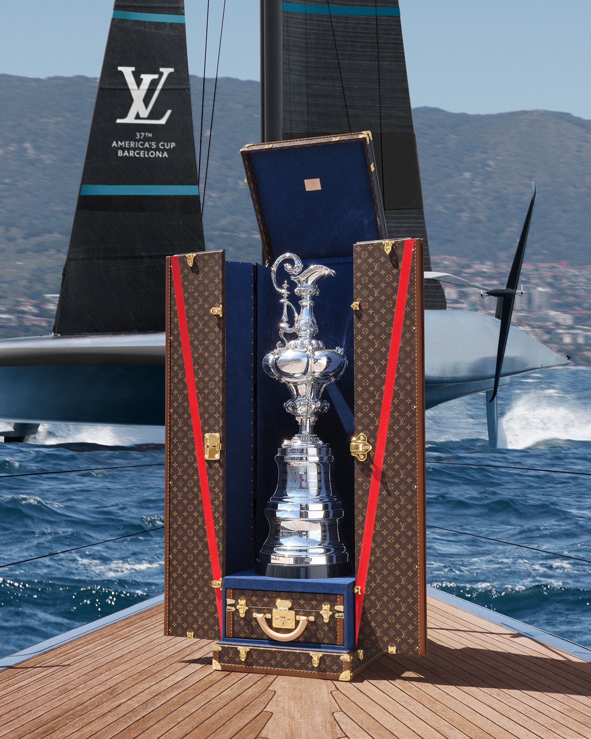 Louis Vuitton is delighted to announce its return to the America’s Cup as the Title Partner of the 37th edition, thus renewing its promise of a legendary journey. This year two exclusive trophy trunk designs are unveiled for the prestigious Louis Vuitton Cup in the first stage of the competition, housed in a trunk lined with ivory-coloured fabric, and the iconic Auld Mug Cup — to be awarded to the ultimate winner. Combining craftsmanship and tradition, the creations are characterised by the iconic Monogram canvas and the “V” symbolising both “Victory” and “Vuitton”.
