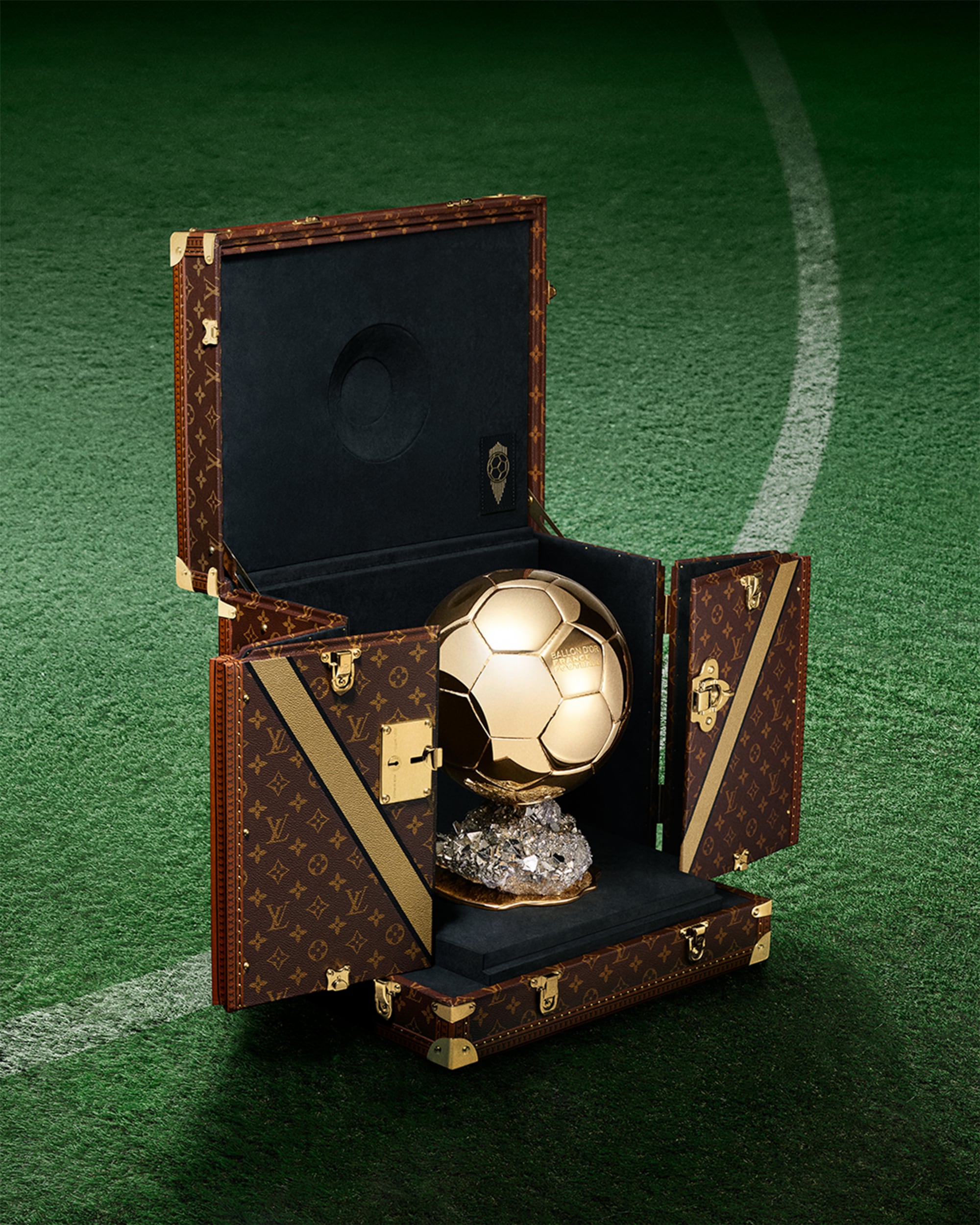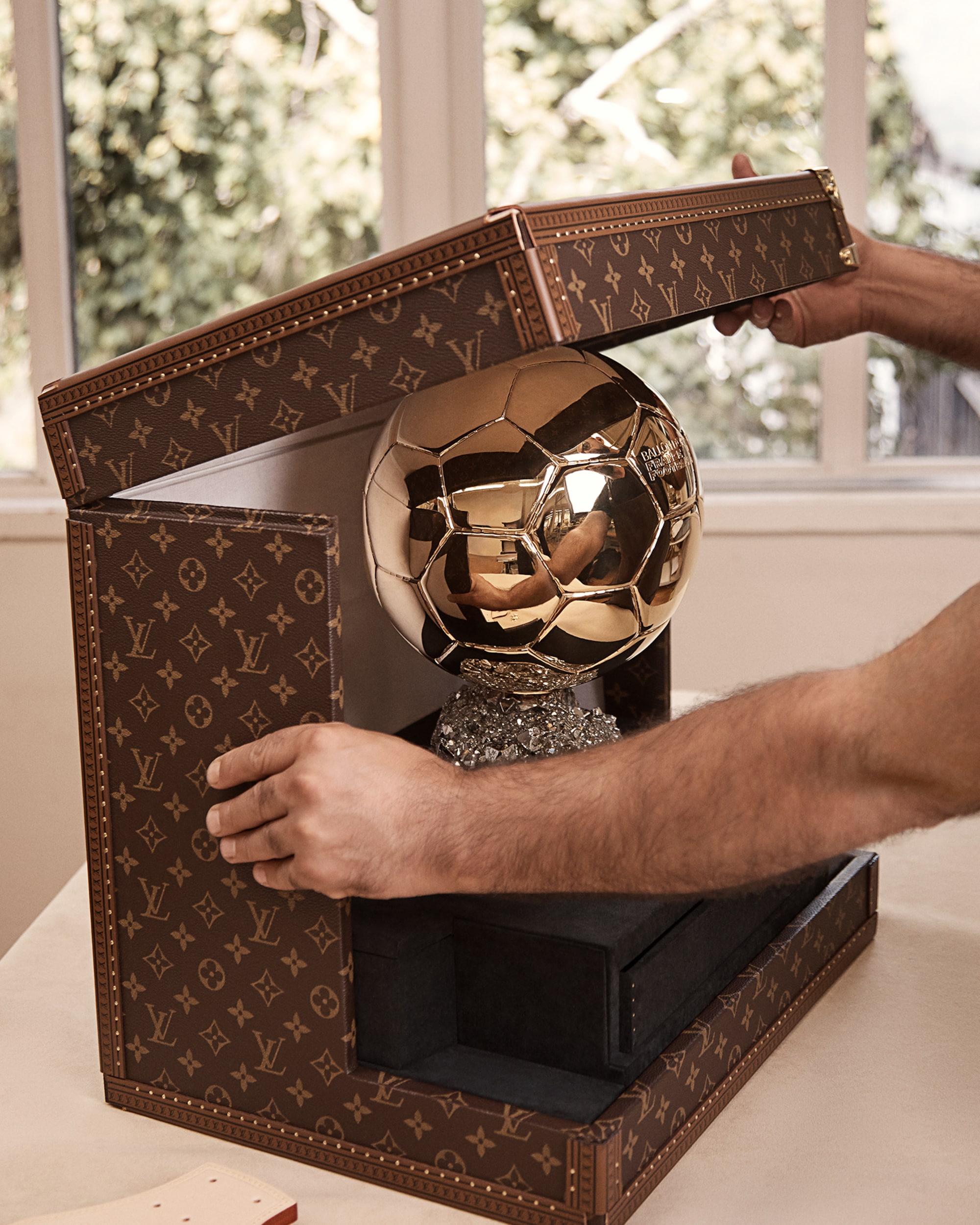 As part of its partnership with one of the world's greatest sporting events, Louis Vuitton has specially designed trophy trunks for the 2010, 2014, 2018 and 2022 FIFA World Cups™. The Trophy Trunk has been carefully crafted to protect the sought-after trophy’s 6.175 kilograms of 18-carat gold and malachite. A gracious and intelligent means of transporting and displaying football’s greatest prize, this elegant case continues Louis Vuitton’s 160-year association with legends: from royalty, writers, explorers to the most recognizable trophy in the world.