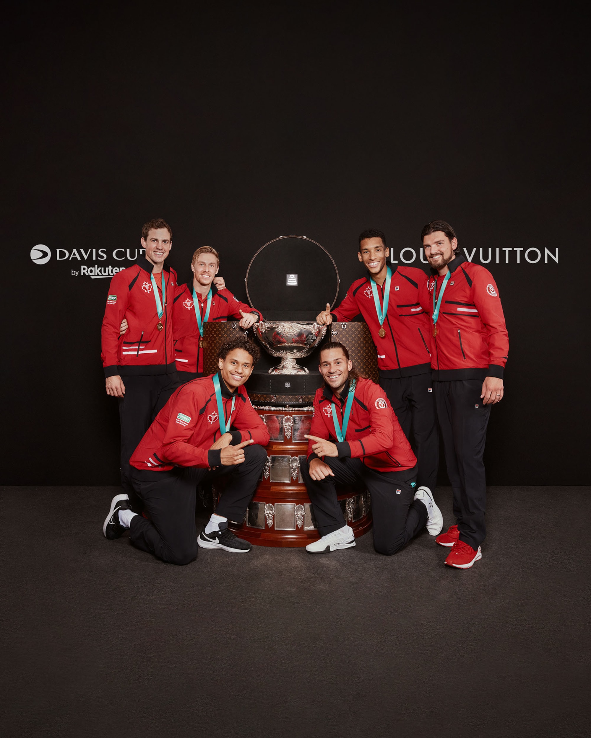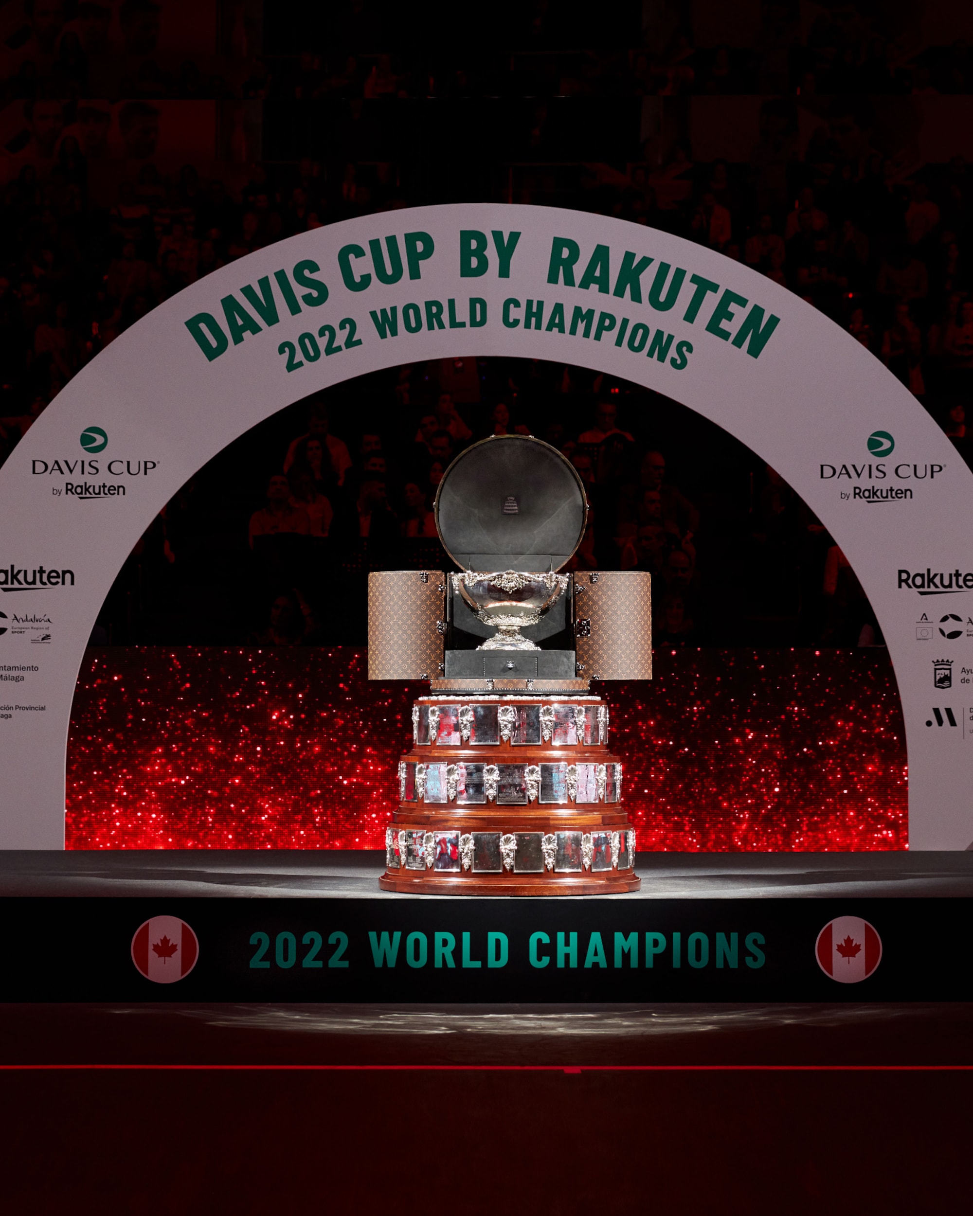 In 2022, the Davis Cup trophy was presented in a bespoke Louis Vuitton Trophy Travel Case, marking the third year of the Maison’s collaboration with the prestigious tournament. Covered in the iconic Monogram Macassar canvas, the unique circular trunk sits atop the cup’s remarkable oversized base, opening at the top and on two sides to create a perfect showcase.