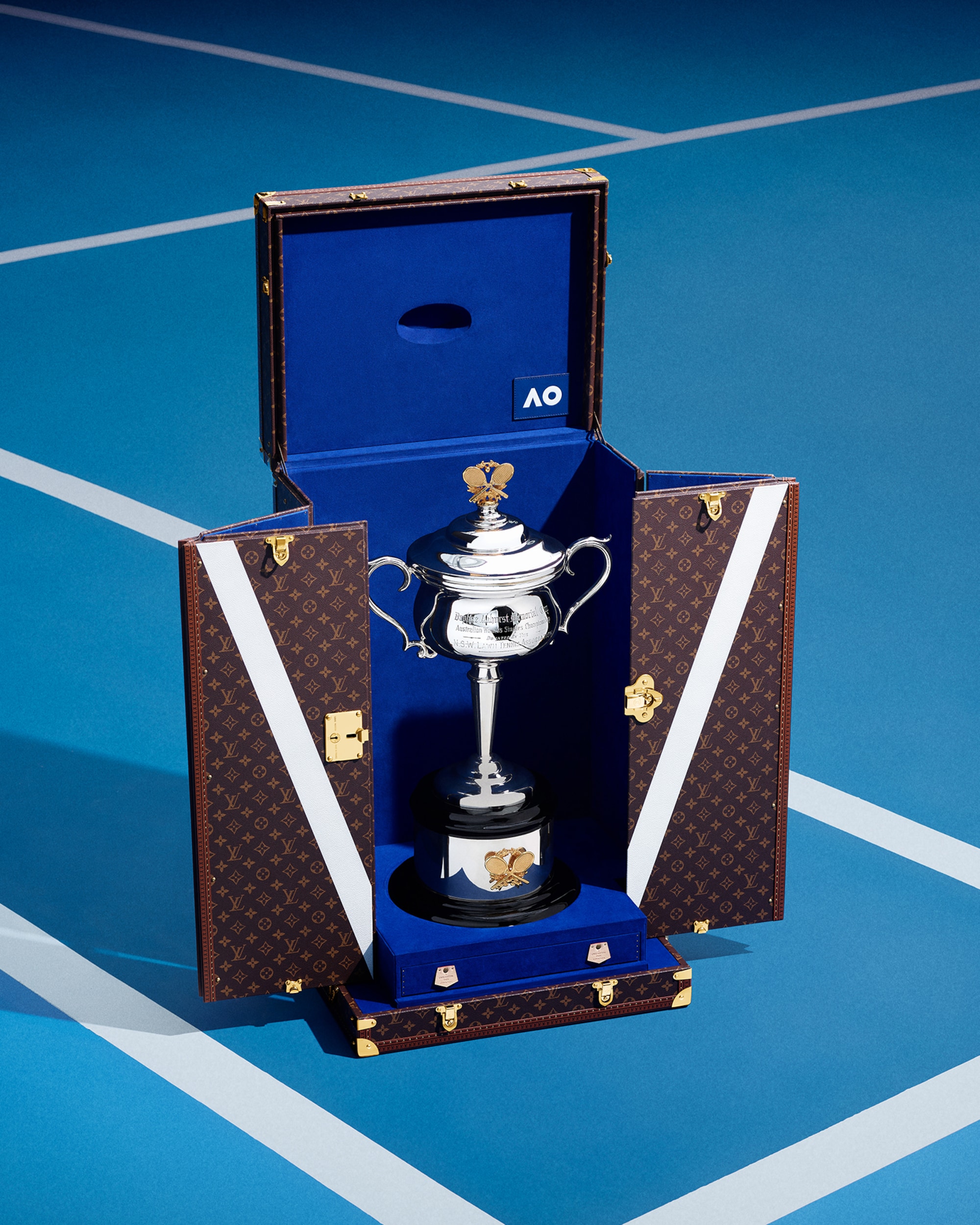 Honouring the Maison’s long-standing commitment to tennis, Louis Vuitton joined forces with the Australian Open 2024 for the first time, as the event’s Official Trophy Trunk partner, creating two bespoke Monogram cases to protect the event’s Daphne Trophy for Women and Norman Trophy for Men. Displayed during the final tournaments and the prestigious prize-giving ceremonies, the two custom-made cases are lined in blue to match the competition's colour codes, while a white AO logo features on the underside of the lid.