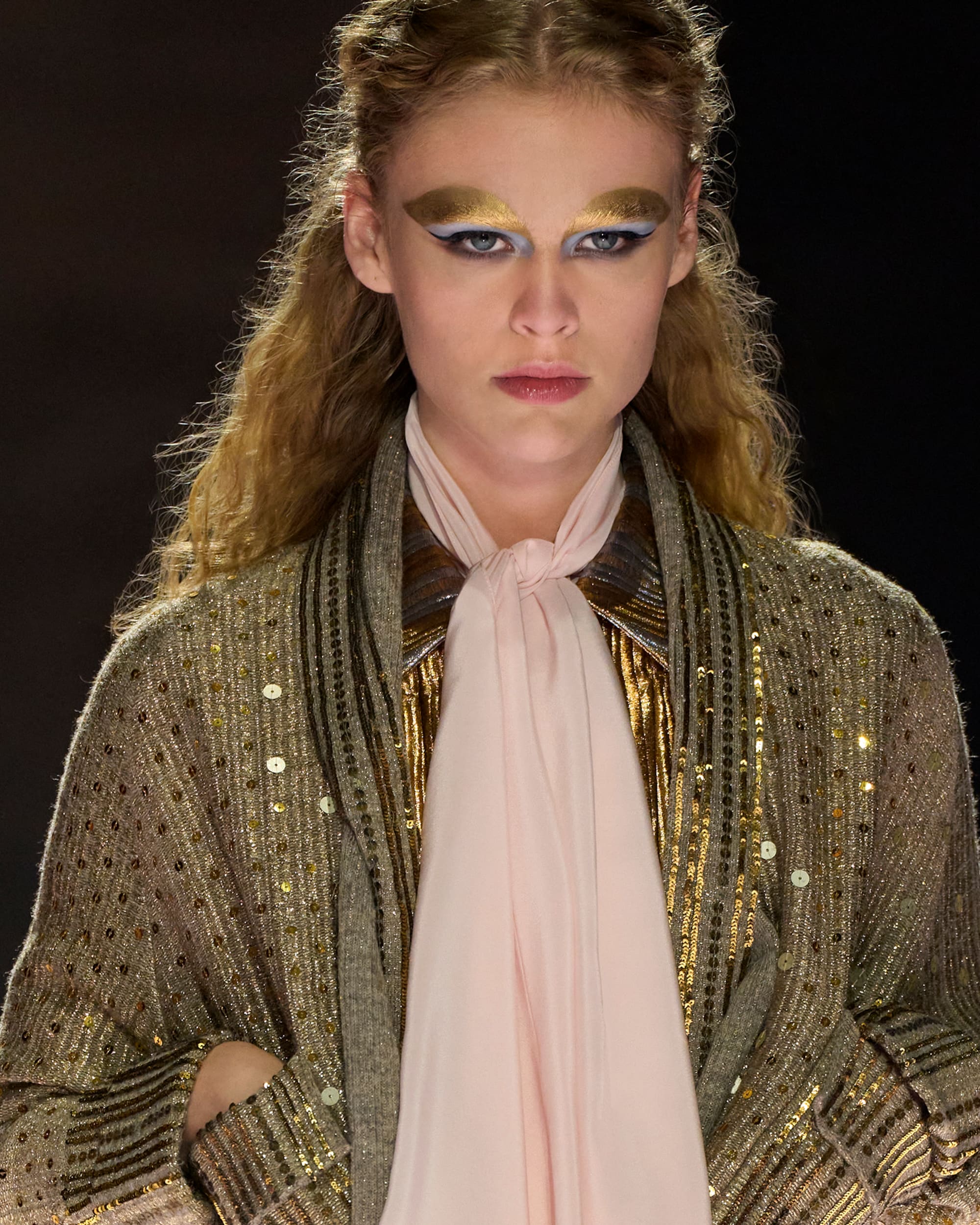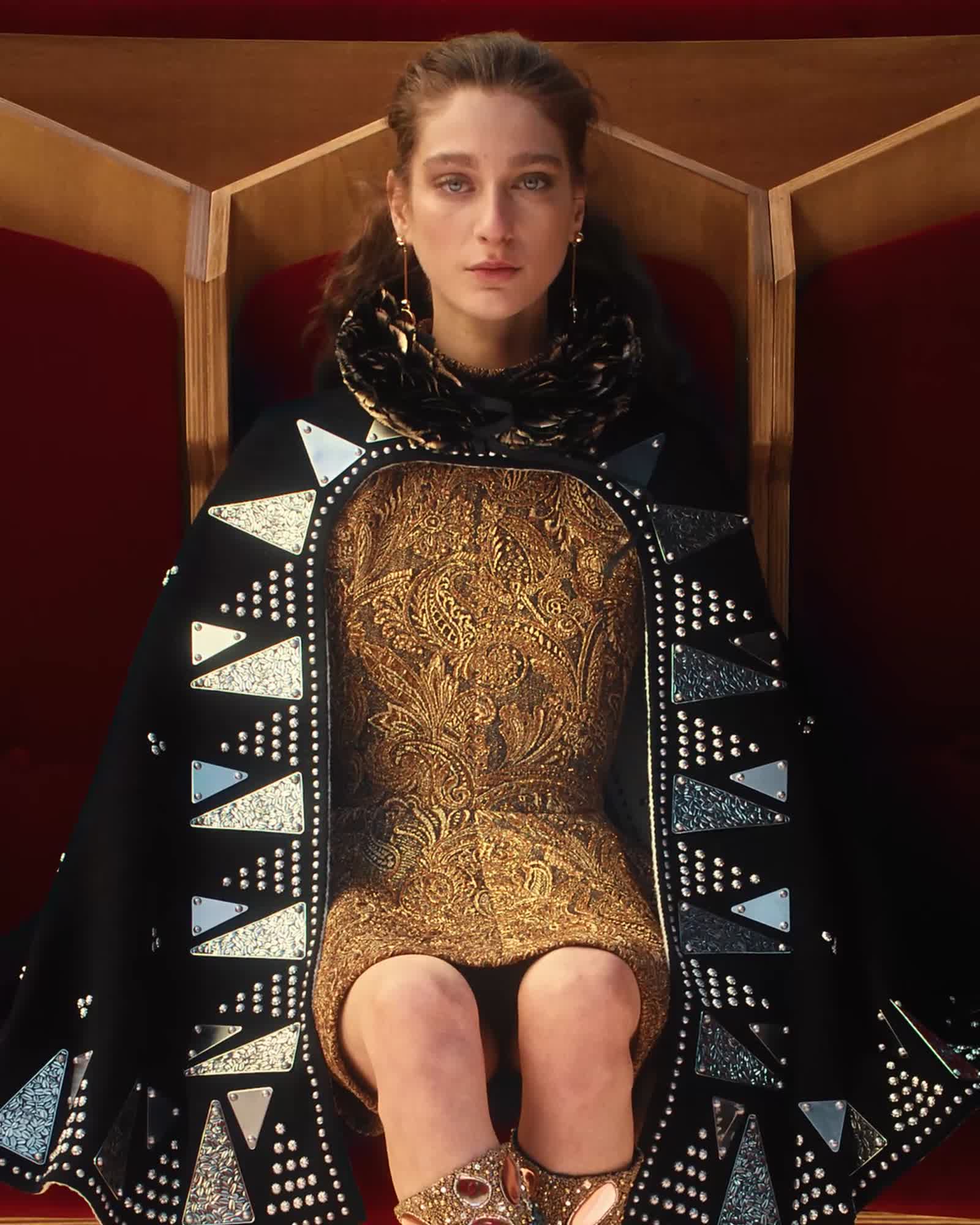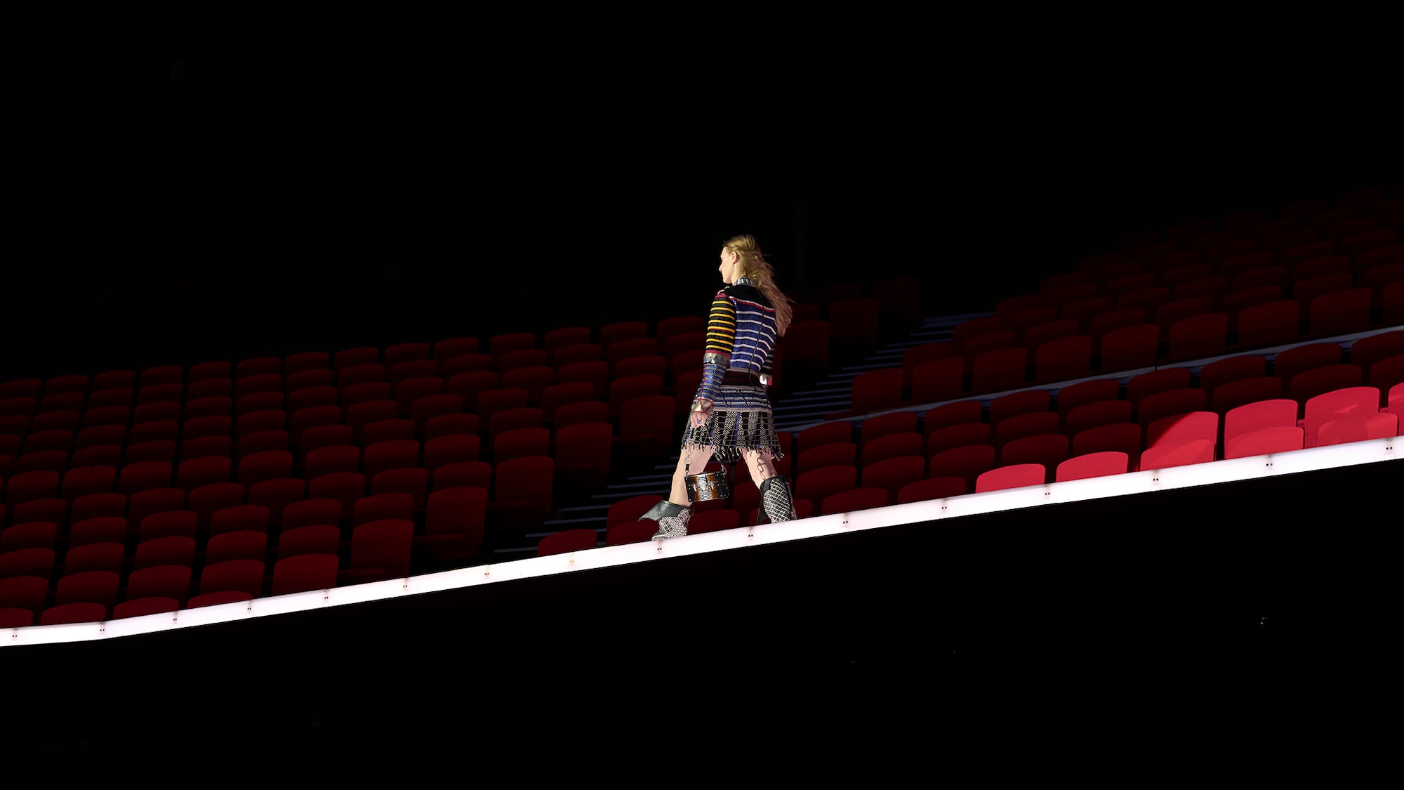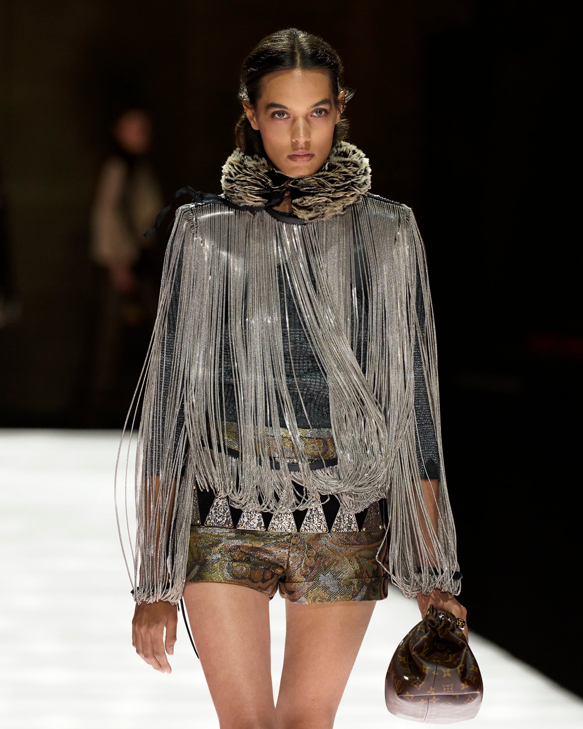 Epitomising a dramatic clash of eras, the splendour of the Middle Ages collides with glam rock extravagance in Nicolas Ghesquière’s homage to the performing arts — underscored by the distinct allure of Louis Vuitton’s leading women.