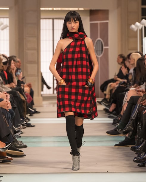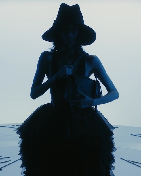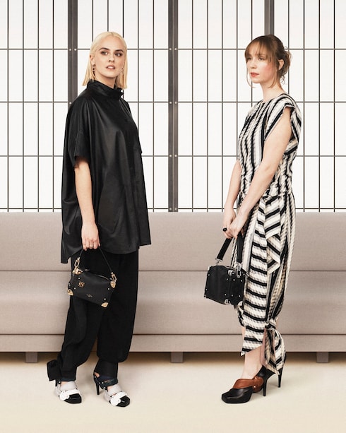 In a display of bold eclecticism, technical outerwear and ruffled gowns are accompanied by emblematic bags, shoes, and accessories in striking proportions. Infused with vibrant pops of colour and graphic prints, the collection features a collaboration with electro group Kraftwerk.