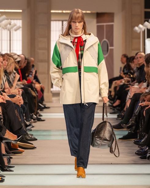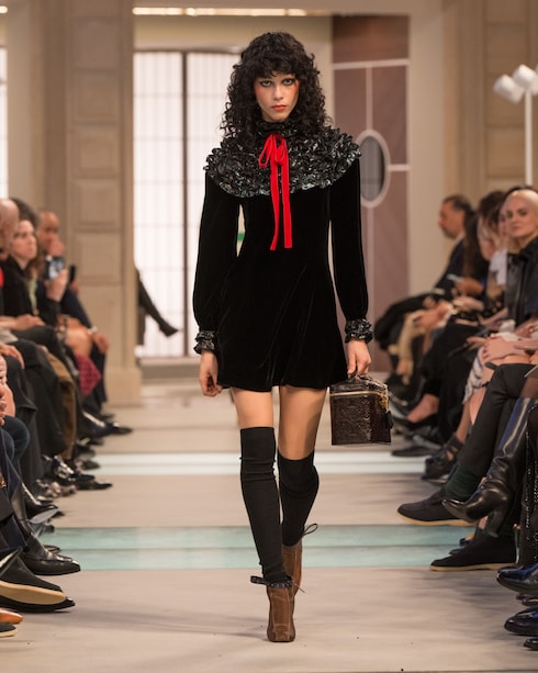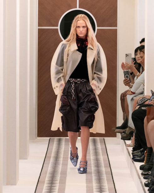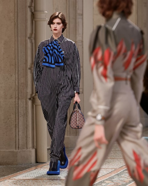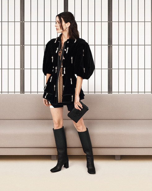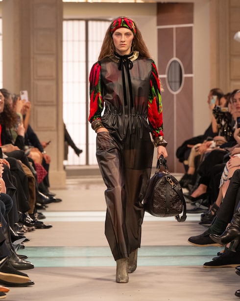 Retracing Louis Vuitton’s travel heritage, Nicolas Ghesquière merges past and present with his audacious signature aesthetic. In a play of volumes, textures, and motifs, the collection redefines modern elegance through a myriad of statement silhouettes with contrasting allures.