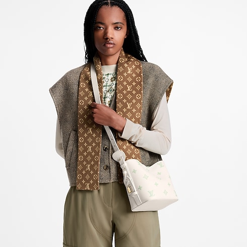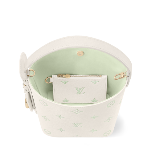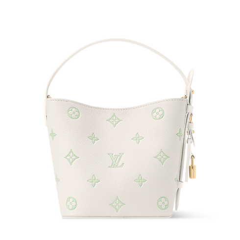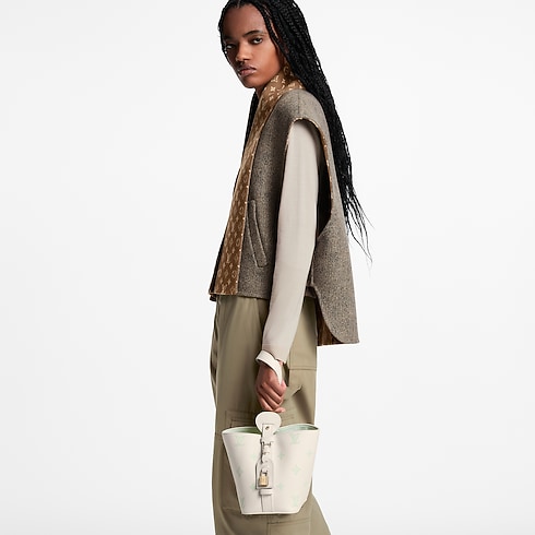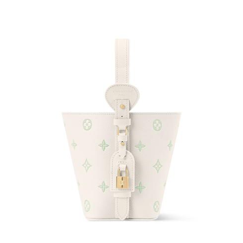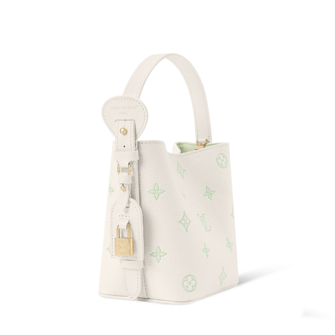 Defined by its playful Milky White and Green color palette, this edition of the All In BB makes a subtle everyday statement. It is crafted from iconic Monogram Empreinte leather with light gold-toned hardware that lends a sleek finish. The decorative name tag and padlock are signatures of the House, paying tribute to archival Louis Vuitton luggage. It can be styled various ways and is sized to fit the essentials.