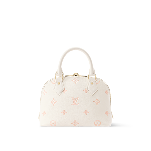 The Alma BB is redefined for the season in a sophisticated bi-color palette, showcasing Milky White and Peach against the House’s Monogram Empreinte leather. It is accented with multiple LV signatures, including a name tag and padlock, as well as a playful decorative charm. The elegant style is adorned with light gold-toned hardware for a sleek finish.