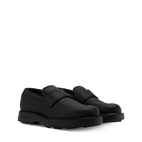 The Bastille loafer comes in Aerogram grained calf leather, an emblematic material of Louis Vuitton leather goods, characterized by its durability and matte finish. The strap on the upper bears the LV Initials signature, while the neoprene trim at the back is embossed with the Damier pattern. A chunky yet lightweight rubber outsole finishes this design.