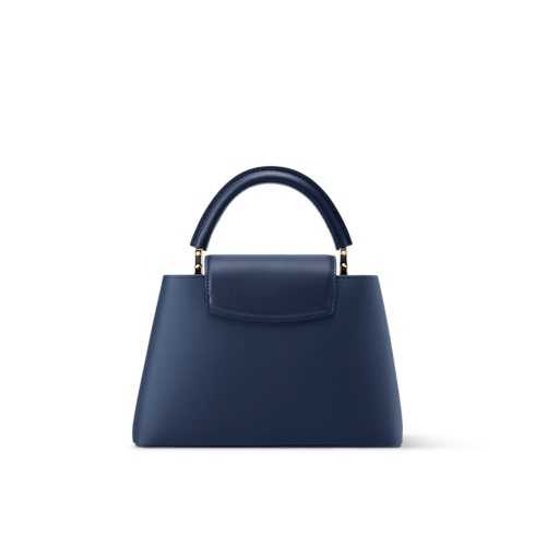 This elegant Capucines BB is defined by the vibrant flora and fauna-print that beautifully offsets the Marine Blue palette. It is crafted from calfskin and trimmed with a cowhide handle and strap, offering multiple styling options. The double-carry style is adorned with signature LV Initials and is fitted with a flat pocket inside the compartmented interior. It is sized to fit everyday items, including a phone, wallet and some makeup essentials.