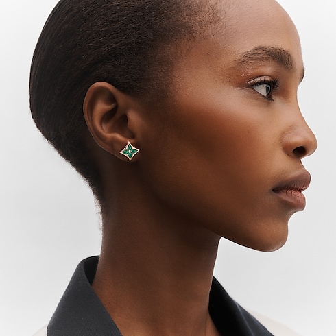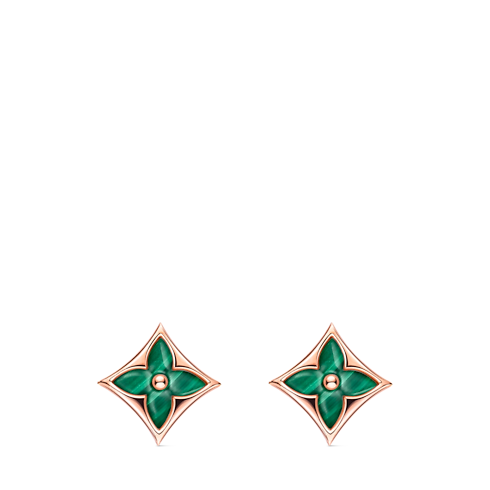 The Color Blossom BB Star ear stud in 18-carat pink gold celebrates the Monogram Flower, designed by Georges-Louis Vuitton in 1896. Hand-set and polished to a high luster, the vibrant green malachite stone is subtly curved for a dimensional effect. A timeless yet on-point piece, it can be worn alone or with other earrings.