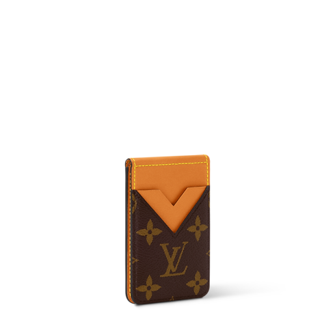 Made from Monogram canvas and natural cowhide leather, the Compact Magnet is a foldable magnetic wallet designed to attach to an iPhone. Compatible with any iPhone or case with MagSafe technology, it offers two front card slots and three inside ones. It also doubles as a stand, holding the phone upright on any flat surface.