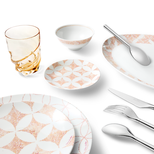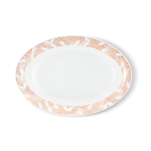 The perfect companion to the other creations from the same series, the beautiful and practical Constellation oval platter makes serving at the table an elegant experience. Its graphic pattern reinterprets a historic House emblem, the Monogram Flower and Diamond motif, in a graceful web of interweaving lines. Made of fine extra-white porcelain, this delicately crafted platter embodies the art of living according to Louis Vuitton.
