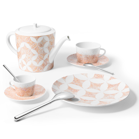 Crafted to perfection in extra-white porcelain, the eye-catching Constellation teapot expresses a subtle, artistic Louis Vuitton signature. Its minutely detailed pattern was inspired by the iconic Monogram Flower and Diamond motif, creating an intriguing interplay of forms and volumes. Machine washable and microwave safe, this elegant, practical teapot makes morning or afternoon tea a special occasion.
