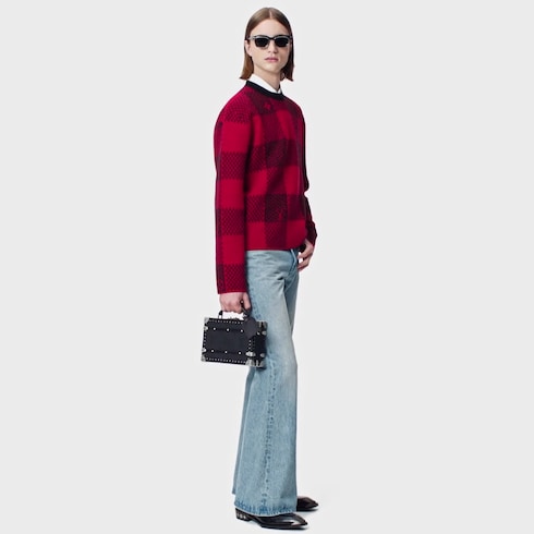This graphic crewneck crafted in fine lambswool is a light layer for cool summer days. It is embellished with the FW24 Show’s Damier Buffalo plaid, offering a Far West take on the heritage Damier motif. Monogram signatures are incorporated into the jacquard intarsia knit, while a contrasting black ribbed collar adds a smart finishing touch.