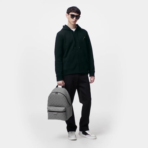 Made from calf leather with an embossed Monogram pattern, the Discovery Backpack combines style, comfort, and functionality. Its supple, body-friendly shape features three outside pockets for easy access to essentials and numerous inside pockets to keep things organized. The black-color hardware completes the understated design.