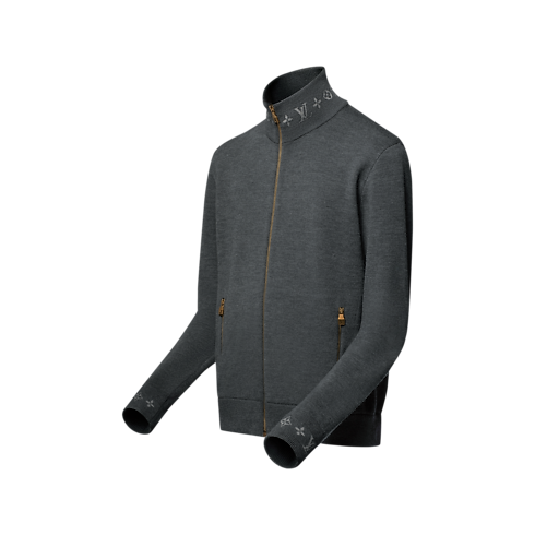 Combining comfort with elegance, this dark grey organic wool blouson is crafted in a double-face knit with a soft cotton interior. The pared-down silhouette is accented with jacquard Monogram details on the collar and cuffs, which remain visible when layered under a coat or jacket. Matching pants make a smart travel set.