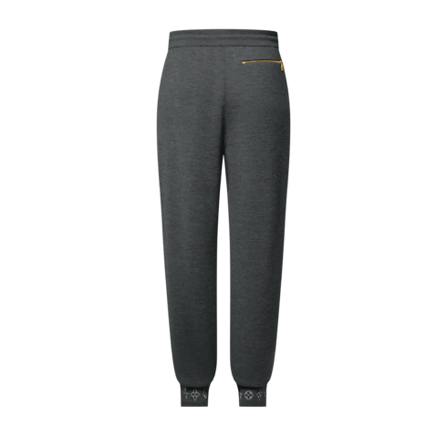 Combining comfort and elegance, these dark grey organic wool pants are crafted in a double-face knit with a soft cotton interior. Their minimalist silhouette, which is distinguished with jacquard Monogram signatures on the cuffs, makes a smart travel set when paired with a matching blouson.