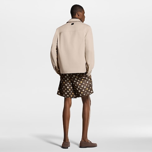 This workwear overshirt embodies this collection’s laid-back yet elegant mood. Crafted in soft beige cotton twill, it is adorned with two Monogram-embossed panels on the front lending a refined textural accent, while Monogram Flower rivets and pearly buttons add further distinction. A black leather patch signs the back. Matching pants make an effortlessly chic look.