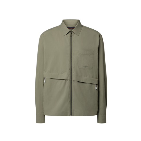 This khaki long-sleeved zip-up shirt draws on the Spring-Summer 2026 show’s chic mountaineering theme with its light technical fabric and practical details. Two asymmetrically placed zippered pockets add a bold, contemporary accent to the front, while tone-on-tone signature embroidery adorns the chest pocket. This piece be styled like a regular shirt or as an overshirt layered over a T-shirt.