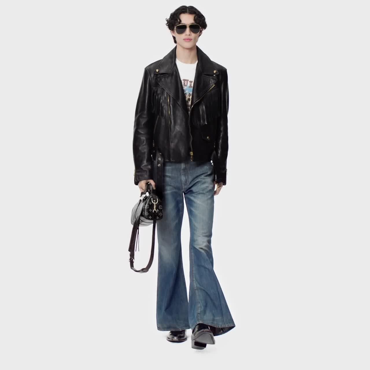 This cotton and linen-blend t-shirt features a digital print of galloping horses on the chest and vintage Western-inspired House signatures front and back. Meticulously applied studs and sequined Monogram Flower details further elevate this casual piece, which captures the FW24 Show’s spirit of freedom and adventure. A perfect buy-now-wear-now piece for pairing with denim shorts or chinos.