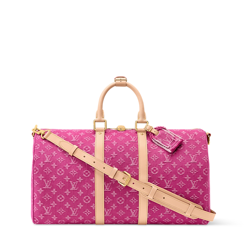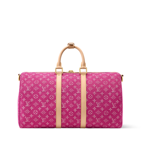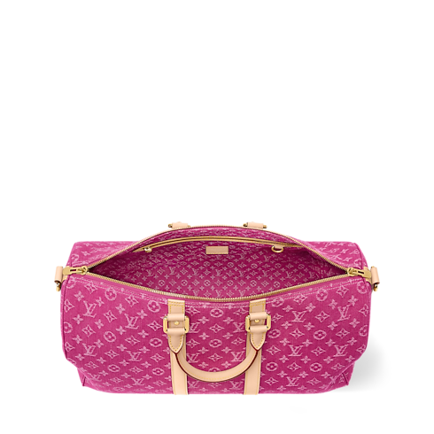 Inspired by a colorway from the House’s archives, this Keepall Bandoulière 45 comes in fuchsia Monogram Denim – a vibrant material that brings effortless style to any look. Natural cowhide leather on the side bands and top handles highlights its classic design, while a detachable and adjustable strap offers versatile carry options.