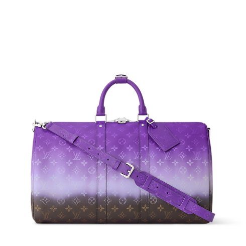 Taking the traditional Monogram Ebene to the next level, Monogram Pigment coated canvas brings bold color to this Keepall Bandoulière 45. The gradient color saturates the top and fades toward the base. Trimmed in cowhide leather, the top handles and removable, adjustable strap are dyed to match the most vibrant part of the design.
