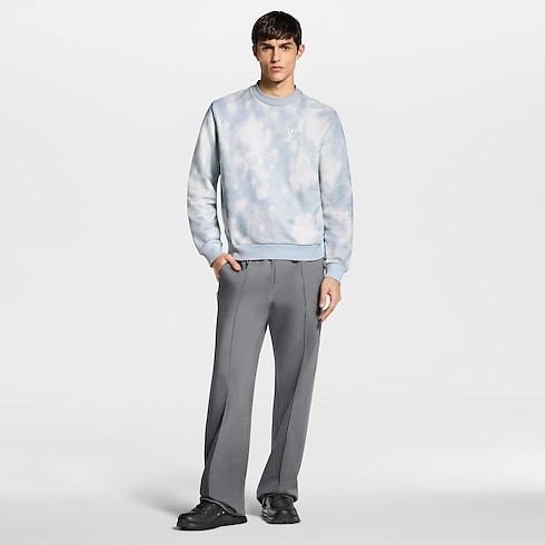 This pale blue cotton crewneck captures the essence of spring. It is printed with this collection’s LV Flowers X-Ray motif, featuring bleached-effect blossoms and discreet Monogram signatures. LV embroidery on the chest and a leather signature patch on the back add smart finishing touches to this graphic piece, which brings a fresh accent to casual looks.