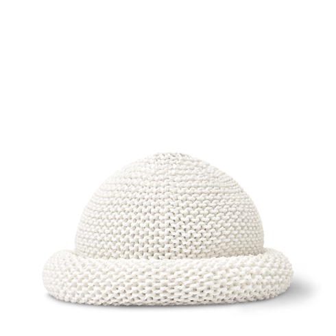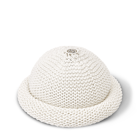 With its intricate pattern and subtle detailing, the LV Roll Bucket Hat is a tribute to Louis Vuitton craftsmanship. Each hat is meticulously crocheted by hand and topped with a gold-colored LV Circle emblem for a discreet House signature. Styled in soft, comfortable cotton, this cozy beanie brings a fresh touch of playful elegance to any look.