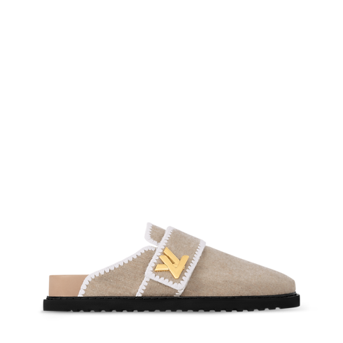 The LV Cosy flat comfort clog features an upper made of soft wool. This relaxed model is elevated by refined details, including contrast stitching around the edges and a gold-toned LV Twist accessory on the strap. It has an anatomic footbed and a lightweight rubber outsole for optimum comfort.