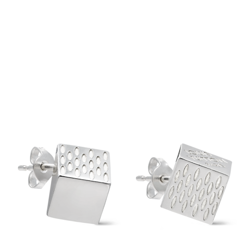 The distinctive design of the LV Cube earrings was inspired by the House’s iconic Damier canvas and Pateki, a puzzle game devised by Gaston Vuitton in 1932. The Damier checkerboard is materialized in sterling silver cubes, meticulously engraved with canvas-like stripes and the Louis Vuitton Paris signature. These eye-catching earrings add a glint of playful sophistication to any outfit.
