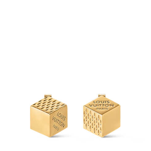 The strikingly original design of the LV Cube earrings was inspired by Pateki, a puzzle game devised by Gaston Vuitton in 1932. Cubes of lustrous gold-colored metal are adorned with engraving that evokes the House’s iconic Damier canvas, complete with the Louis Vuitton Paris signature. These fun, eye-catching earrings add a touch of playful elegance to any look.