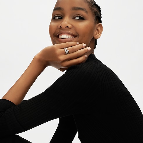The LV Diamond Solitaire ring showcases the Maison’s exceptional jewellery savoir-faire. Cast from 950 platinum, the ring is centered with an LV Monogram Star cut diamond, a cut inspired by the iconic monogram flower. The unique faceting heightens the stone’s beauty, lending it a spirited sparkle unlike any other. The center stone is set into a pavé monogram flower bezel and flanked on either side by pavé diamonds that form a subtle “V” shape, further enhancing the jewel’s signature brilliance. From 1.00 carat, a delicate flower shaped open work below the diamond allows light to flow effortlessly and enhances the center stone's radiance. This piece is accompanied by an LV Diamonds certificate, a unique and immutable digital record of the central diamond’s characteristics and its journey, from extraction to final setting. This secure Certificate is powered by Aura Blockchain Consortium technology. It may also be customised, if desired, with an engraved date, message or initials.