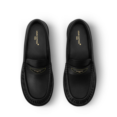 The LV Jazz loafer is crafted from supple calf leather. This elegant model nods to classic jazz shoes with its unique construction combining flexibility at the front and structured support at the back. The strap on the vamp is complemented by a leather detail embossed with the Louis Vuitton signature and highlighted by contrast stitching.