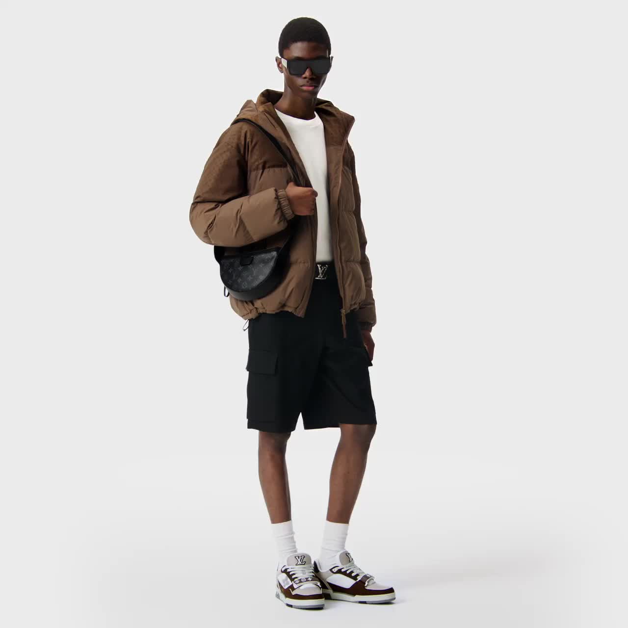 The LV Moon Crossbody bag is made from Monogram Eclipse coated canvas with black-leather trim and strap, giving it a masculine sophistication. The bag’s half-moon shape makes it comfortable to wear, whether across the front of the back of the body. It can easily fit a phone, small wallet, and earphones.