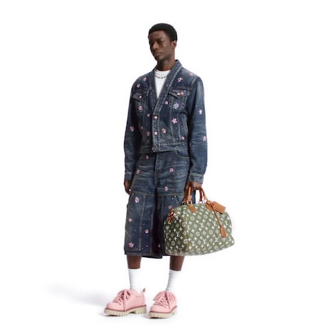 The LV Remix derby in calf leather draws inspiration from classic hiking boots, reimagining their proportions to create a fashion-forward silhouette. The upper combines thick laces and Monogram Flower-engraved hooks with details taken from Louis Vuitton leather goods, notably a key bell in Monogram canvas and a natural leather back tab with yellow stitching. This model is finished with a chunky rubber outsole.