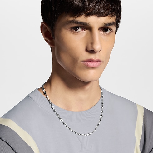 The LV Sailor Mini necklace is an understated addition to the marine-inspired family of everyday jewelry. Fashioned from polished sterling silver, the sized-down links create a compelling chain of House signatures and unusually detailed components that take their cues from nautical instruments. The result is a romantic style that honors the past.