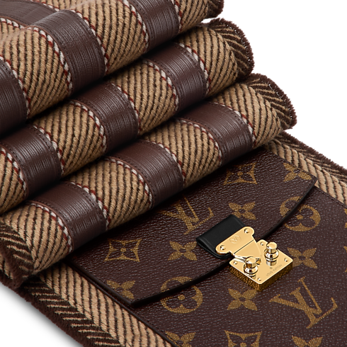 With its refined styling and exclusive signature details, the LV To Go Pockets scarf emanates contemporary yet timeless sophistication. Crafted in soft, plush wool, it features a pattern of classic stripes accented by a clever Monogram canvas pocket. Draped around the neck or cinched at the waist, this versatile scarf offers a unique combination of elegance and function.