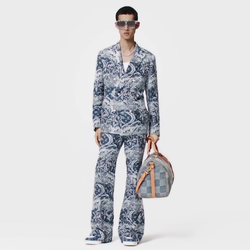 This edition of the LV Trainer sneaker pairs Damier denim with smooth calf leather. The combination of materials highlights this model's elaborately constructed upper. Rubber signatures and a technical rubber outsole complete this cult design, which was originally created by Virgil Abloh.
