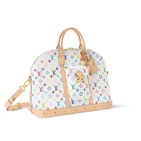 The Alma Travel bag’s distinctive silhouette embraces a pop-art spirit in Monogram Multicolore coated canvas. Originally created by Takashi Murakami for the House in 2003, this multihued variation on the Monogram motif includes 33 distinct colors. Lined in cream-colored microfiber, it’s finished with natural cowhide trim and golden hardware, including riveted accents.