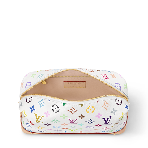 This timeless Cosmetic Pouch GM is vibrantly refreshed with multicolored Monogram coated canvas from the cross-category Louis Vuitton x Murakami collection, inspired by the Japanese artist’s signature rainbow palette. A studded natural cowhide leather trim adds an edgy twist to the design. An extra-wide golden zipper allows easier access to the roomy inside compartment, which is finished with a practical washable textile lining.