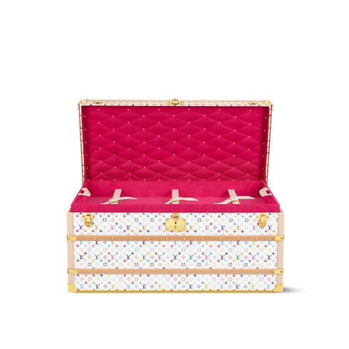 An emblem of the House, this Courrier Lozine 110 has been vibrantly reimagined in rainbow tones as part of the celebratory re-edition of the Louis Vuitton x Murakami collection. Natural cowhide leather highlights the structure of the case, complete with studded lateral bands, while gleaming golden hardware accents the corners and closures. The inside is organized with two removable trays with leather handles, while the top of the lid is detailed with iconic Malletage quilting.
