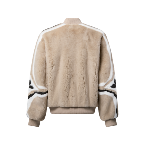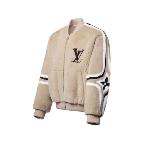 This sumptuous mink blouson is fashioned with a rounded bomber silhouette with ribbed trim for a cozy and contemporary après-ski style. Crafted in delicate cream tones, the deep and silky fur is adorned with sophisticated intarsia bands incorporating Monogram Flower signatures on the sleeves, while graphic LV lettering embellishes the chest.