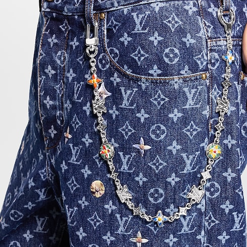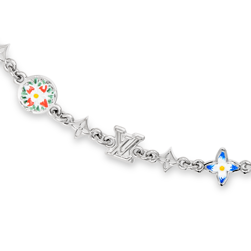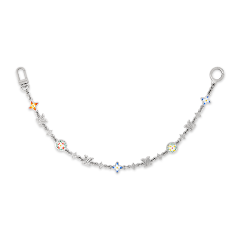 The Monogram Flower chain belt is the perfect product for cllient looking for a signature piece with a touch of colors. . The delicate link is composed of Initials and Flower charms from the iconic Monogram of the House, gently dotted with bloom-inspired colors. Its silver-toned construction achieves a versatility that endures and adapts.