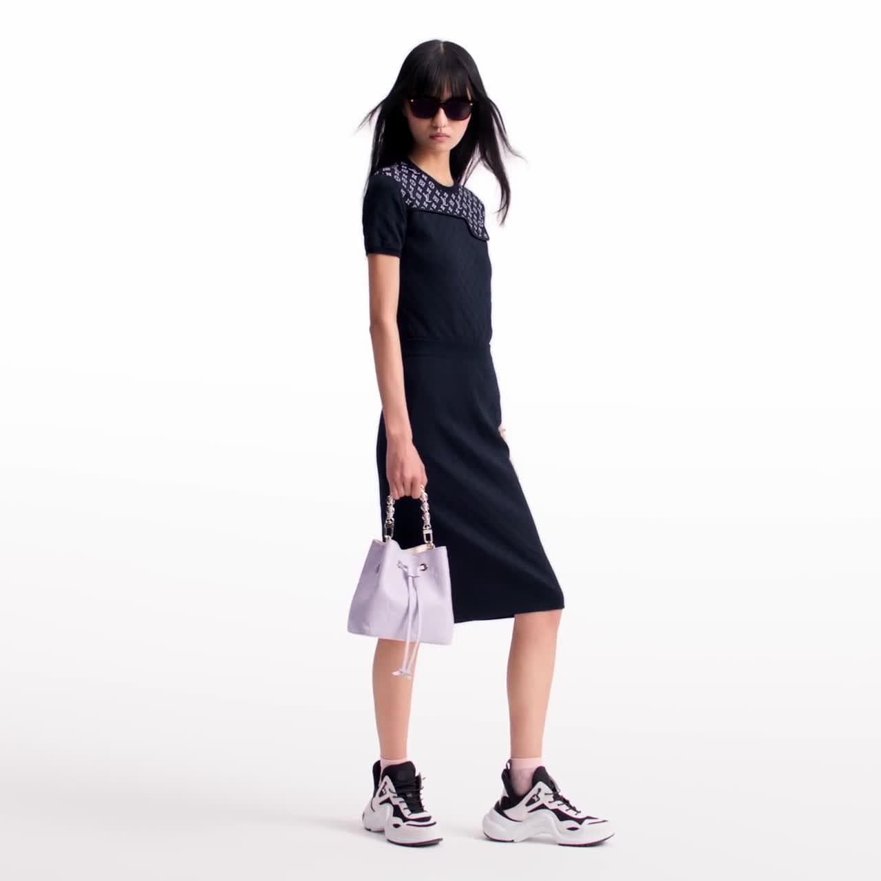This knit top has a modern, sporty spirit in a soft silk blend spun in a fitted short-sleeved shape. It is signed all over with a subtle Monogram jacquard, while the chest is highlighted with a graphic two-tone version underscored with black piping. A snap-button embellishment on the chest completes the look with a structured detail.