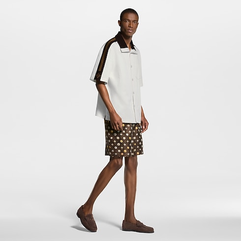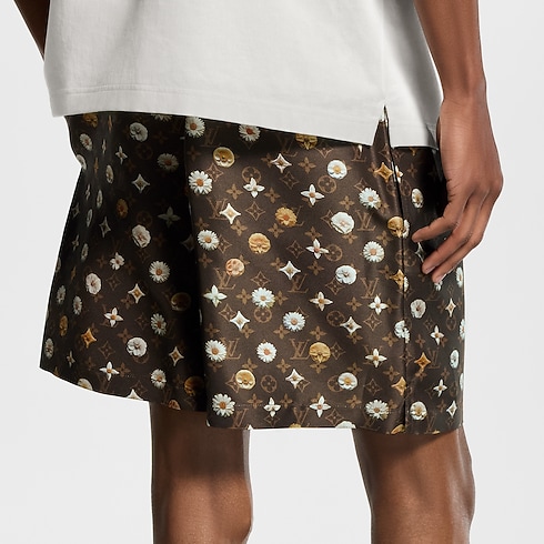 Crafted in rich, organic silk twill, these fluid drawstring shorts step into spring with this collection’s joyful Blooming Monogram motif. Printed on a heritage brown base, the cheerful motif features an allover Monogram pattern overlaid with 3D effect flowers inspired by the iconic signature. A matching short-sleeved shirt makes a graphic set.