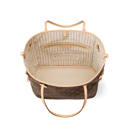 This elegant edition of the Neverfull Inside Out MM is crafted from Monogram canvas and inverts to a chic and versatile Sand colorway on the reverse. It is elevated with a leather strap, gold-toned hardware, and a Louis Vuitton label that celebrates the House’s iconic heritage. The capacious design fits a laptop, as well as everyday essentials and can be worn over the shoulder or carried by hand.