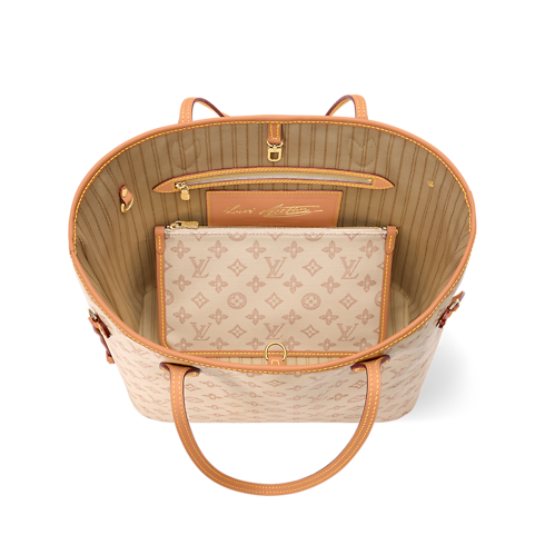 A true collector’s piece, this Neverfull MM pays tribute to the heritage of Louis Vuitton and the iconic 130-year-old Monogram. Inspired by an archival client register book, this reimagined take on the signature pattern is offered in a timeless colorway on canvas. Capaciously sized, it fits everyday essentials, including a laptop, and is fitted with a striped zipped pocket to keep smaller items secure.