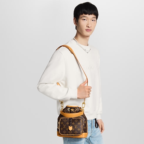 The Noé Cargo in Monogram canvas with aged-leather trim draws its essence from the original Louis Vuitton Noé bucket bag, created in 1932 to carry champagne bottles. With its spacious front pocket and meticulously crafted details, it pays homage to the House’s storied past while embracing contemporary needs. A top handle and shoulder strap – both removable – give carry options.