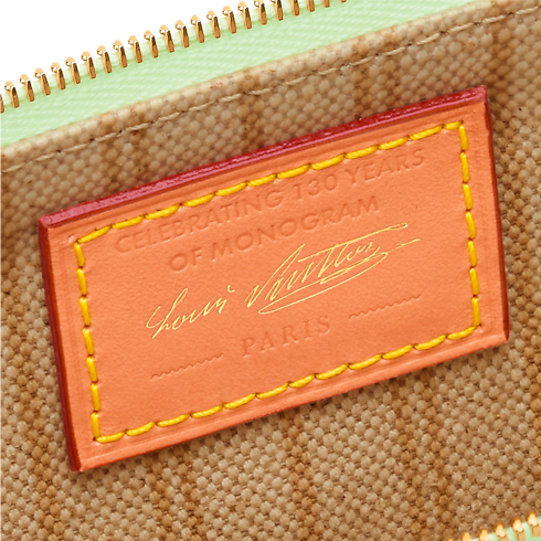 Celebrating 130 years of the iconic Louis Vuitton Monogram, this exclusive Pochette Accessories is offered in an elegant colorway that complements daytime and evening looks. It is crafted from Monogram Origine canvas with smooth cowhide trims and is elevated with a removable address tag, paying tribute to the House’s travel heritage.