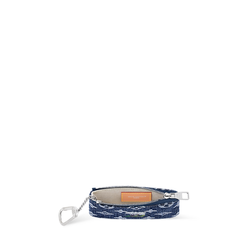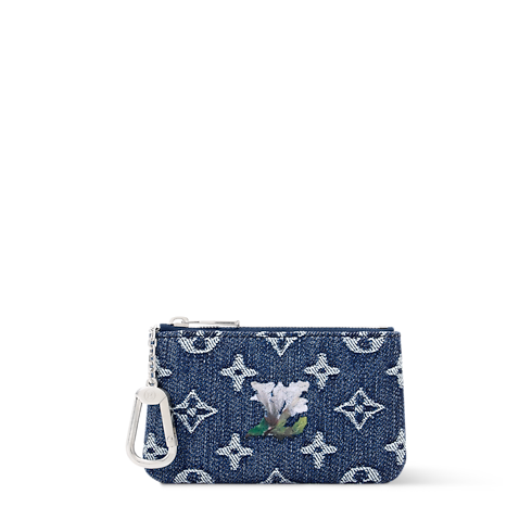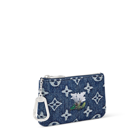 The Pochette Clés XS key pouch is made from Monogram Flowers Denim, finished with a silver-tone hook and chain on the matching zipper. The Monogram is woven into the fabric and enriched with embroidered floral details. A crafted yet practical accessory, it’s perfect for keys, with space inside for coins and bills.