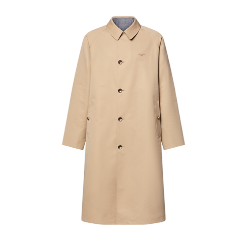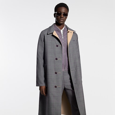 This light, reversible cotton-silk trench coat can be styled many ways. The classic beige exterior contrasts an elegantly understated front with this season’s graphic LV Alphabet lettering on the back. Reversed, it reveals a gray glen check jacquard, accented with a discreet embroidered signature on the chest. The pared-down silhouette is perfect for a transeasonal wardrobe.