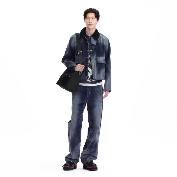 This graphic short-sleeved crewneck draws on this collection’s regal LV Emblem motif inspired by British stately homes. The richly worked jacquard knit on a dark blue base mixes Louis Vuitton signatures with heraldic elements, including ribbons, crowns, a dog and a fox. This sophisticated piece elevates a casual look.